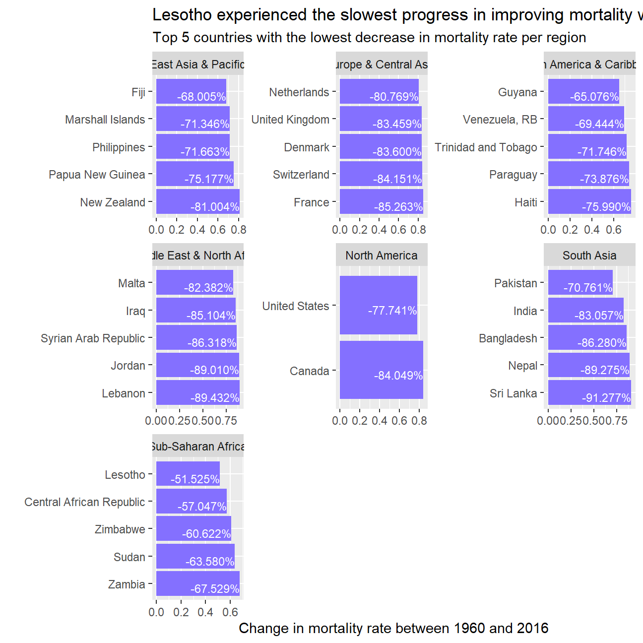 subtitle="Top 5 countries with the lowest decrease in mortality rate per region"